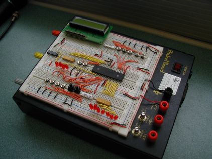 This is from a course I did for my Masters degree. I wanted to post a picture to show how to breadboard without making it look like a spaghetti bowl. The project was to make a vending machine controller using the PIC16F87. Most people used assembly and did not have a serial LCD, but I used a c compiler. This proved to be more efficient and effective.
