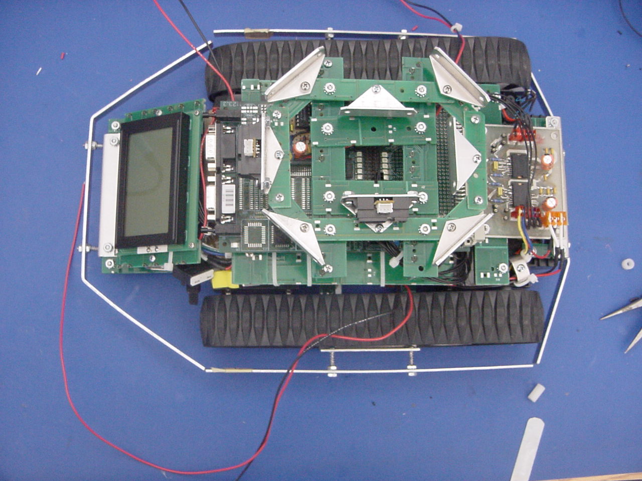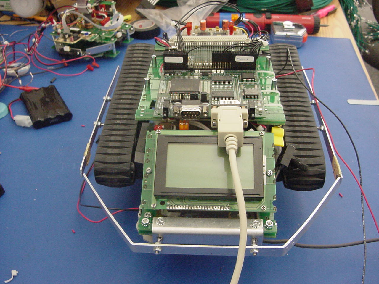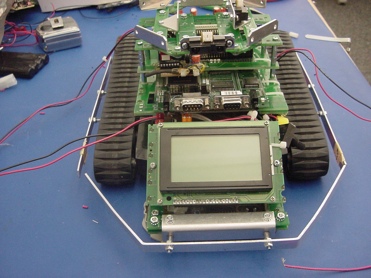 The next order of business was to put in the LCD. The LCD is placed right over the optical mouse. Also these are some of the few pictures that you could see the interconnects that I got for the robot, generously provide by Tyco. Underneath the 167 board the LCD interface board lies. That is where all of the wires that are going beneath the 167 board are going to.