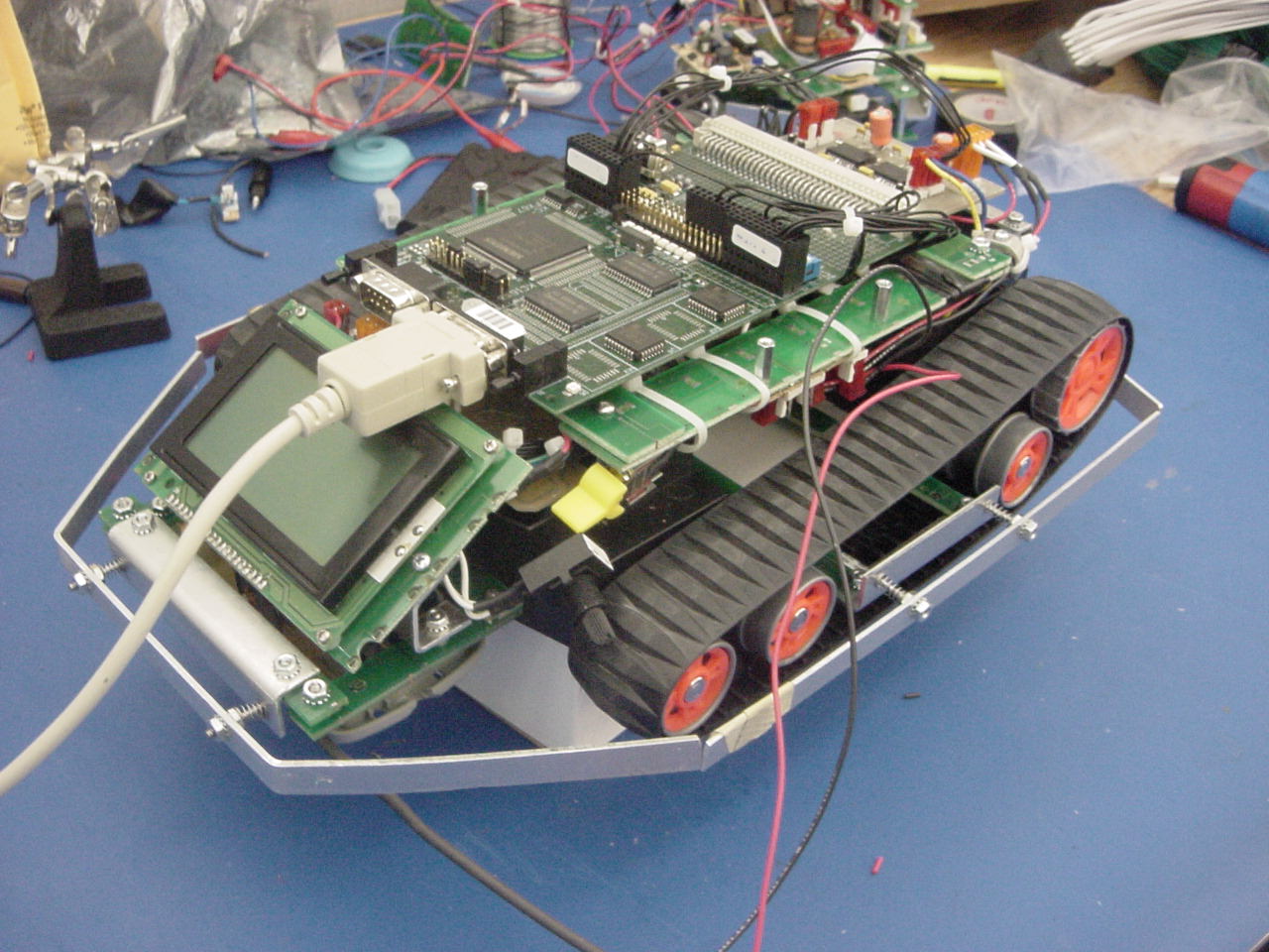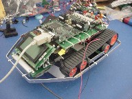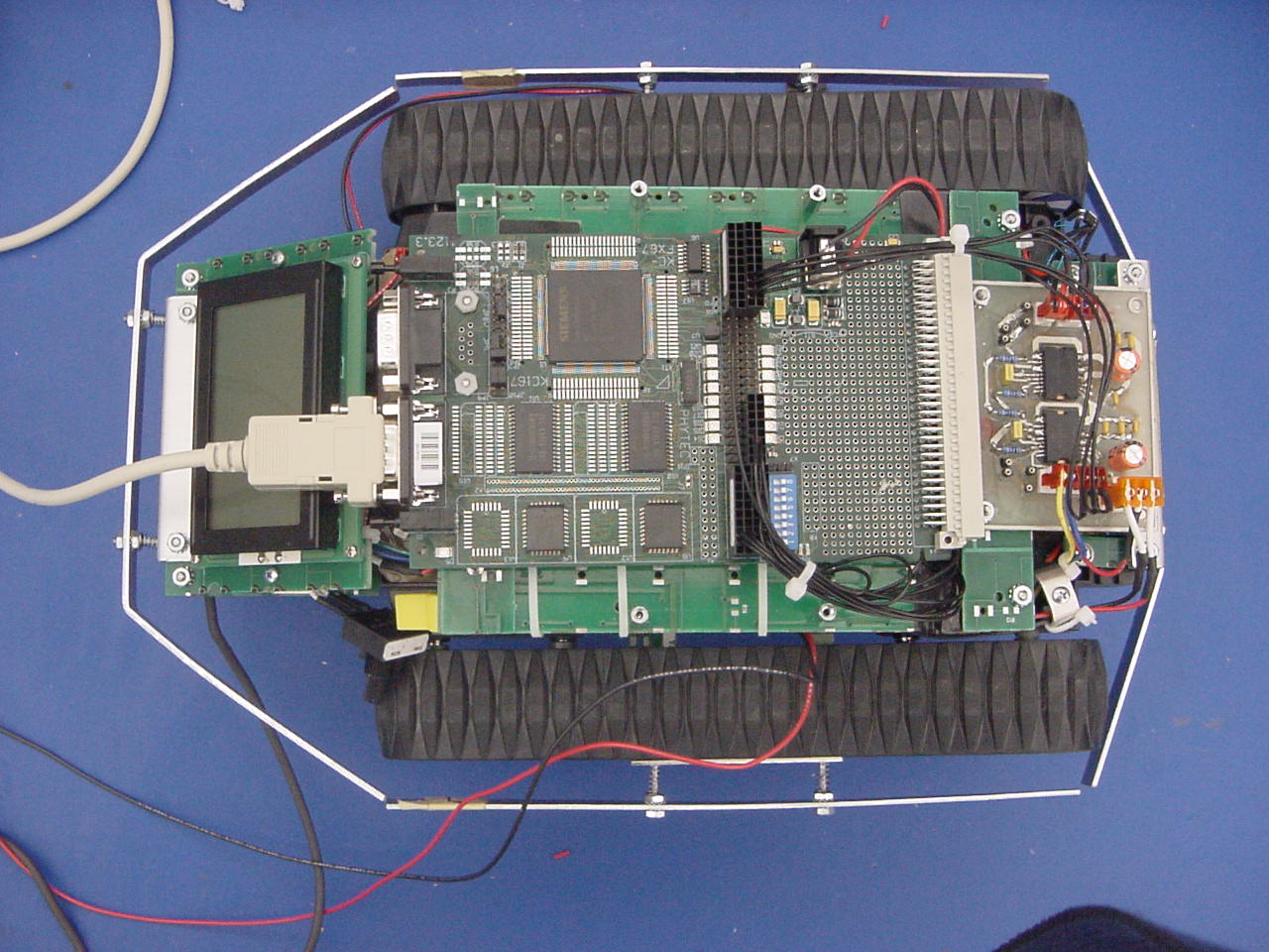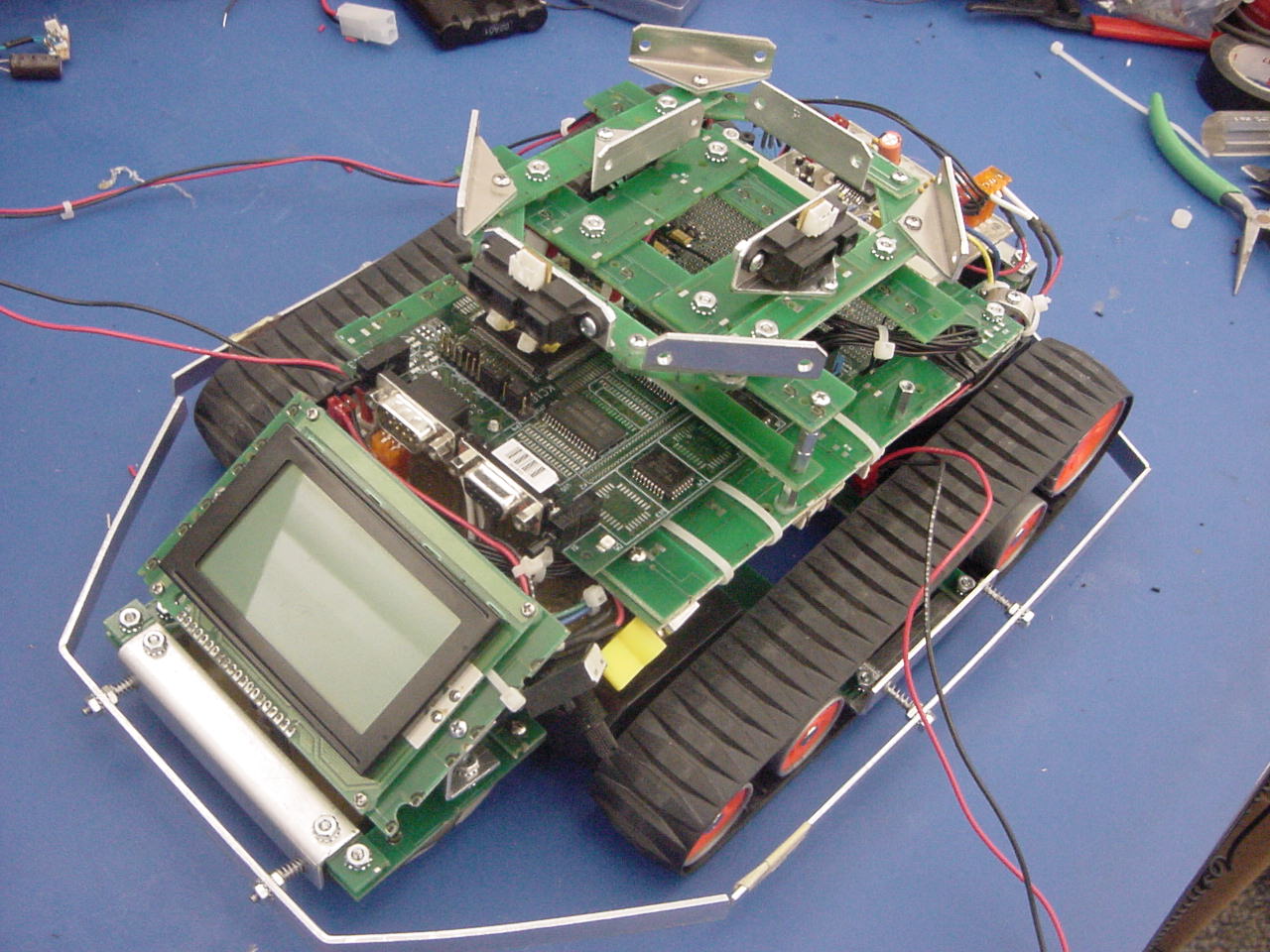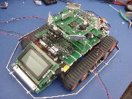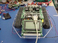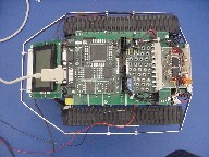 The next order of business was to put in the LCD. The LCD is placed right over the optical mouse. Also these are some of the few pictures that you could see the interconnects that I got for the robot, generously provide by Tyco. Underneath the 167 board the LCD interface board lies. That is where all of the wires that are going beneath the 167 board are going to.
